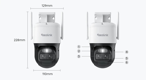1. Spotlight; 2.Infrared LED; 3. Lens; 4. Status LED; 5. Daylight Sensor; 6. PIR Sensor