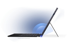 - Ultimate work companion. Transform into a laptop effortlessly and customize viewing angle for the perfect ergonomic setup. Use the magnetic keyboard (sold separately) and say hello to seamless productivity;