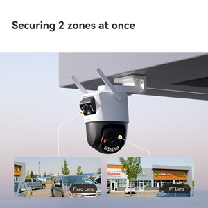 With one 4MP Pan-Tilt lens and a 4MP fixed lens on top, securing two zones at once