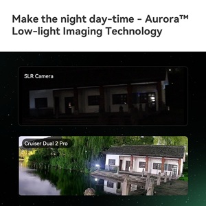 - Cruiser Dual 2 Pro uses an super-large aperture and a large target surface sensor to multiply the amount of light intake, and with the AI-ISP picture algorithm, it makes the nighttime surveillance image look like daytime; you can also use infrared and full-color night vision modes, or turn off night vision;