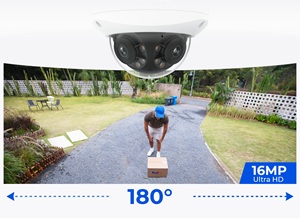 IK10 vandal proof PoE dome camera with 16MP resolution, motion track and 180° panoramic view! Capture the finest details in 16MP. The dual 4K sensors and the quad-core SoC (chip) of the Reolink P757 work together to produce incredibly sharp images, you never miss a thing. It captures license plates of parked cars clearly from up to 16 meters away!