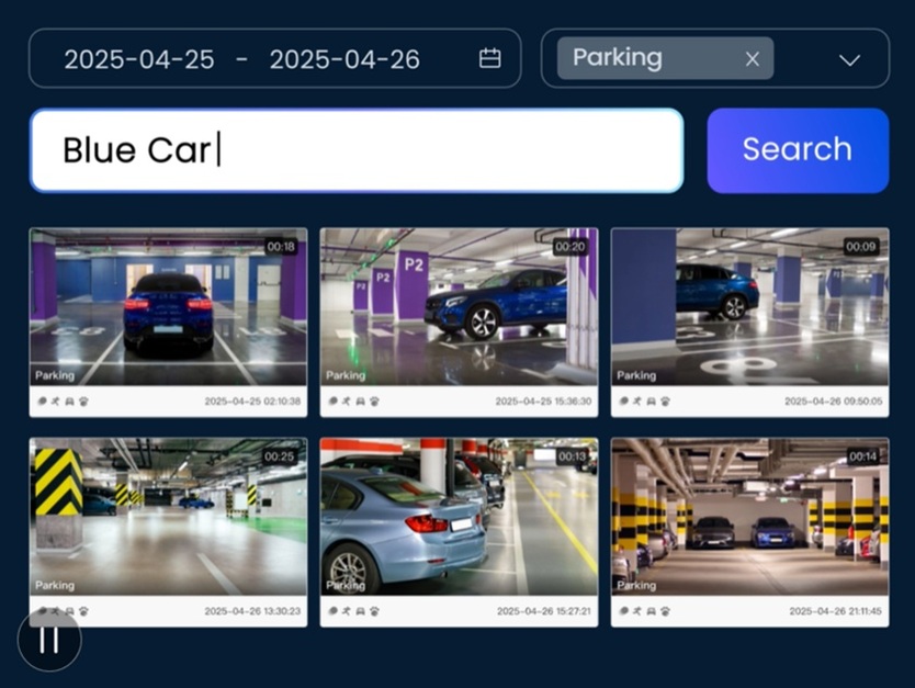 Find what matters in seconds with AI-powered video search, no more scrubbing through hours of footage. This function analyzes locally stored recordings of alarm-triggered events to identify people or objects based on specific features. Simply enter a brief description (e.g., 'blue car' or 'person riding a motorcycle') to instantly locate the relevant footage.