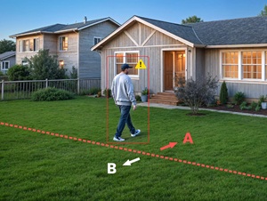 - Line Crossing alert. Draw a virtual line at key access points such as gates, entrances, or driveways. The camera will immediately alert you if anyone crosses that line, preventing unauthorized access to private property, storage areas, or employee areas;