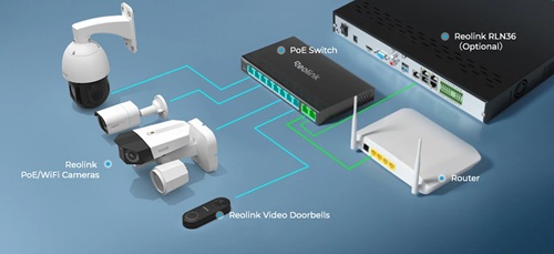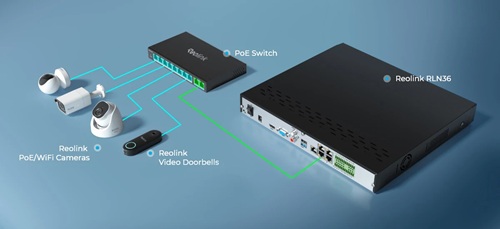 - Plug&Play. Reolink RLA-PS1 works perfectly with your PoE cameras and transfers both data and electric power, with only one Ethernet cable required. Easy to set up, even for beginners. Designed to meet your diverse needs, it can be directly connected to your NVR for higher reliability and security;