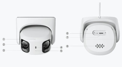 - 180° panoramic view. This dual-lens camera uses advanced dual-image stitching algorithm to seamlessly stitch two views into a single 180° panoramic image with no blind spots;